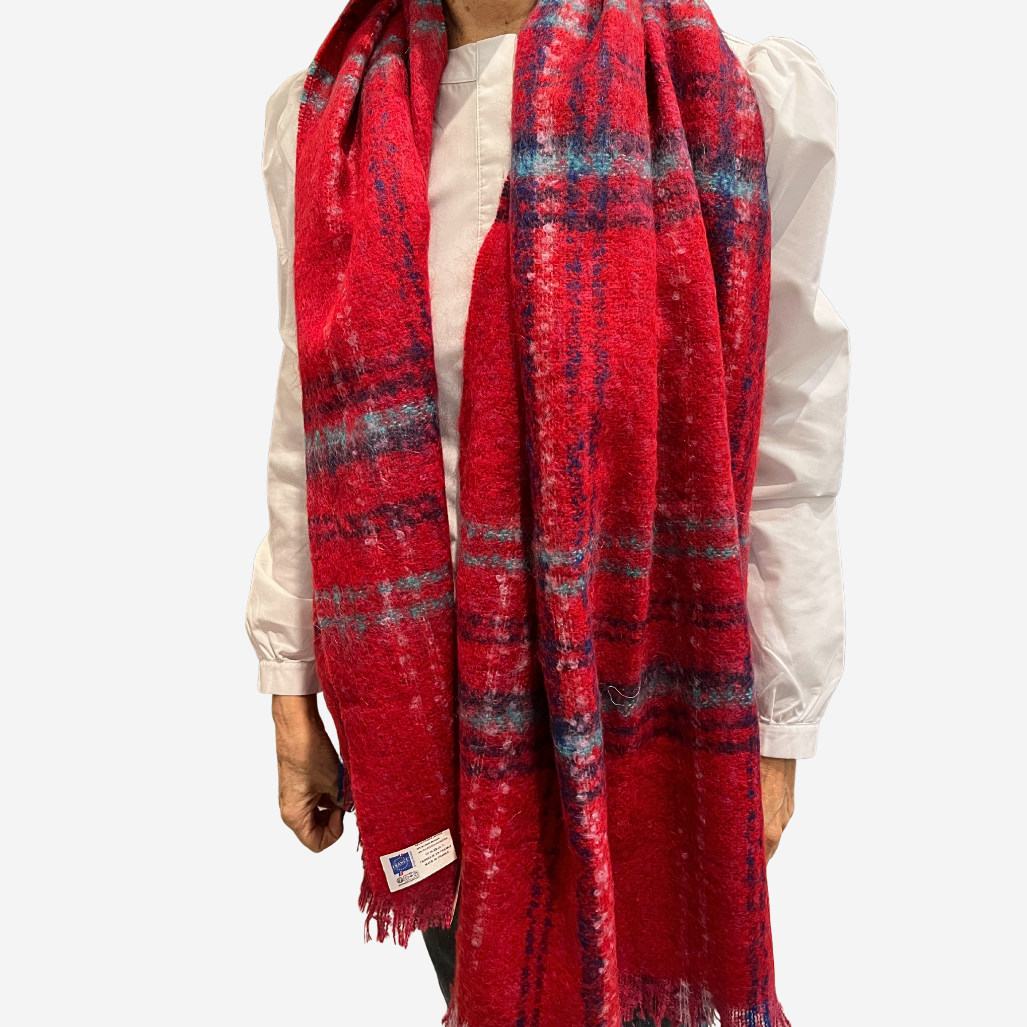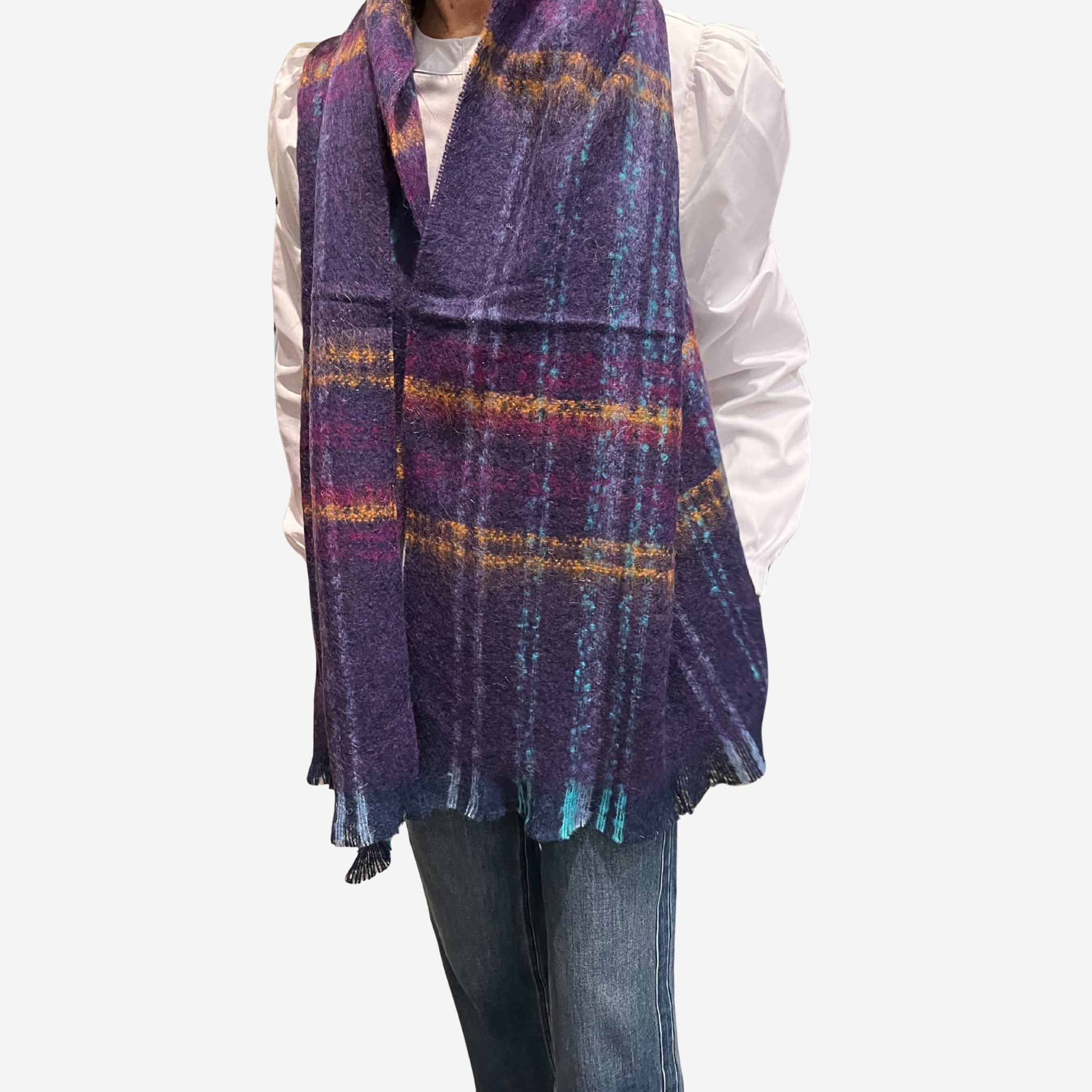 Bufanda de cuadros grandes multicolor con flecos.