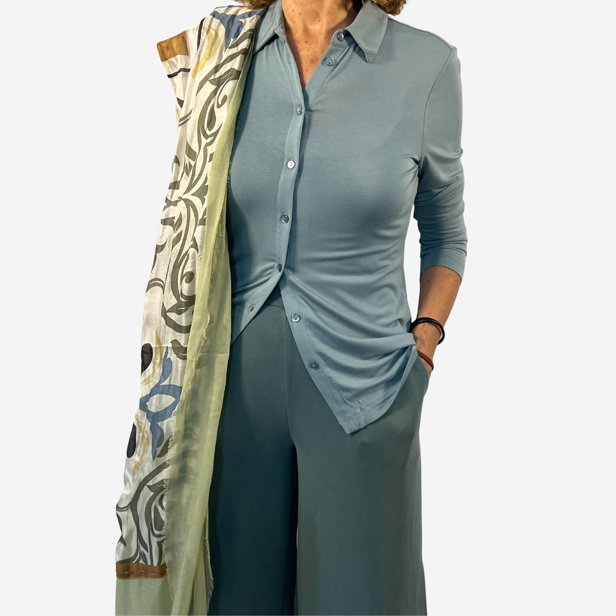 Camisa de bambú azul celeste