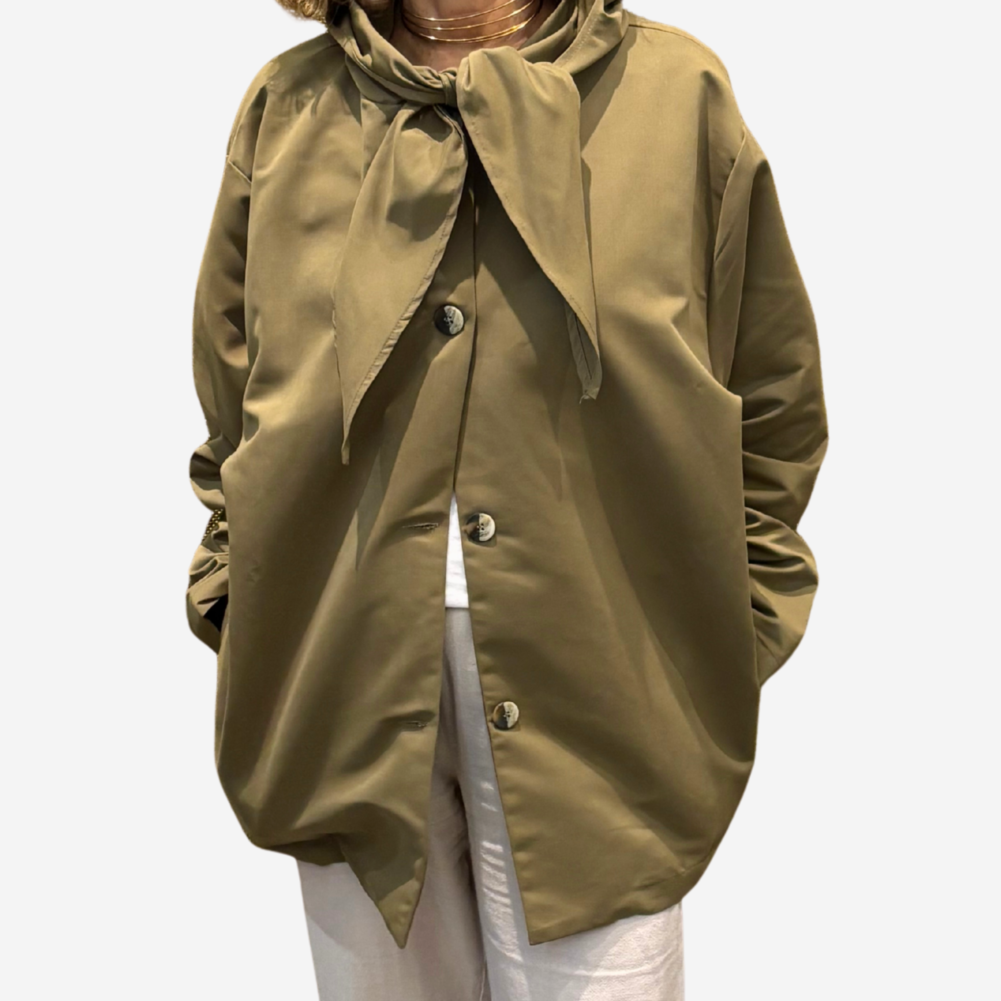 Gabardina caqui con lazada al cuello