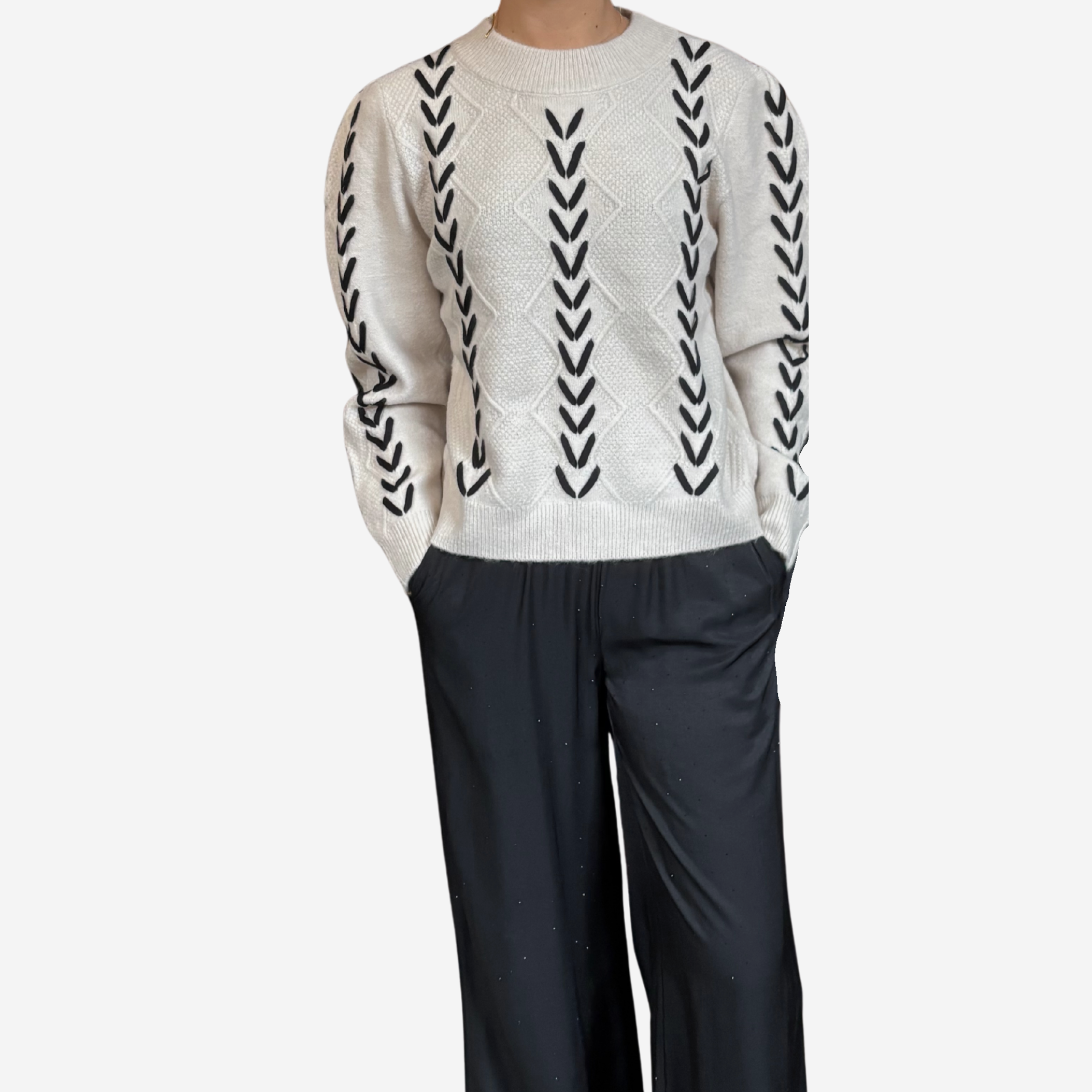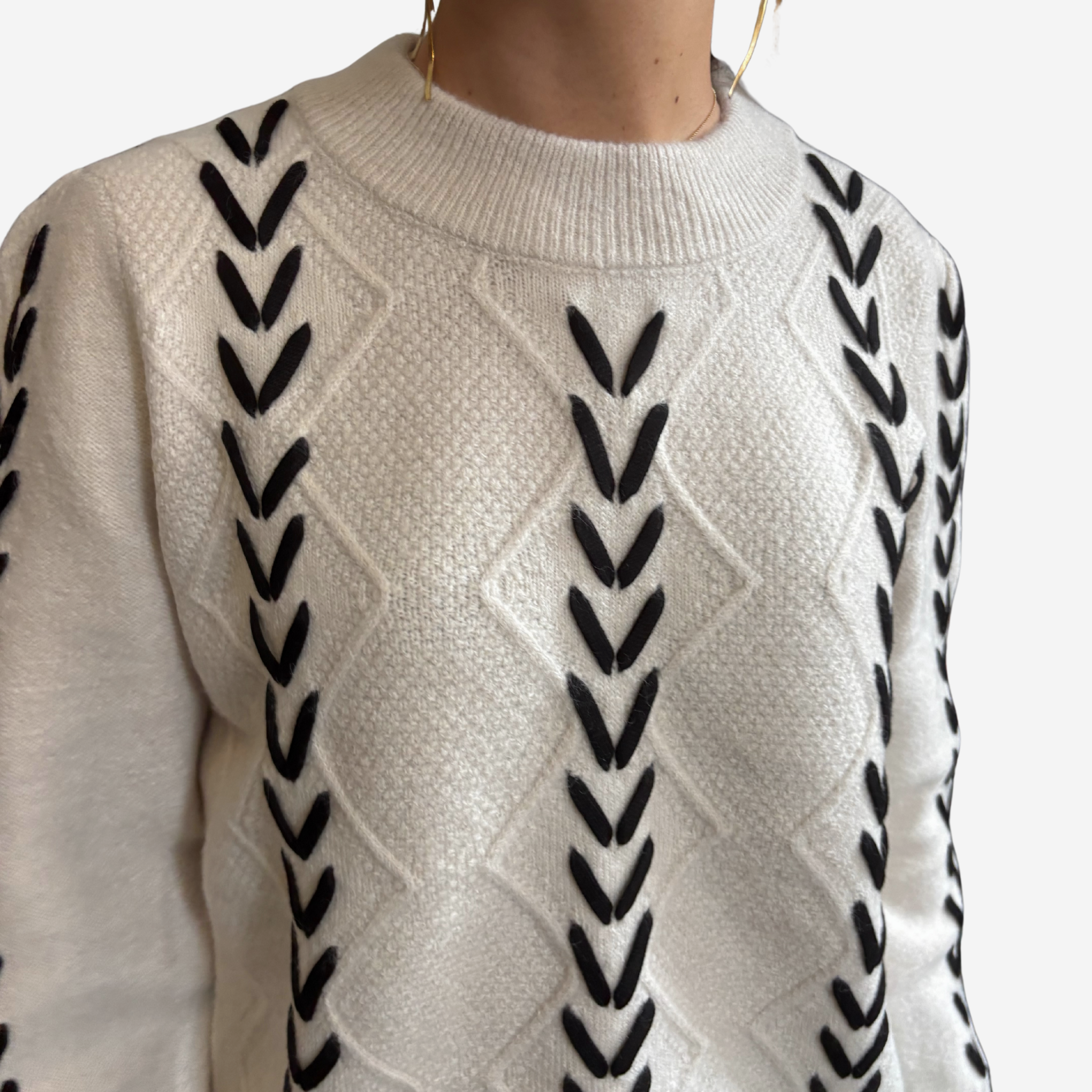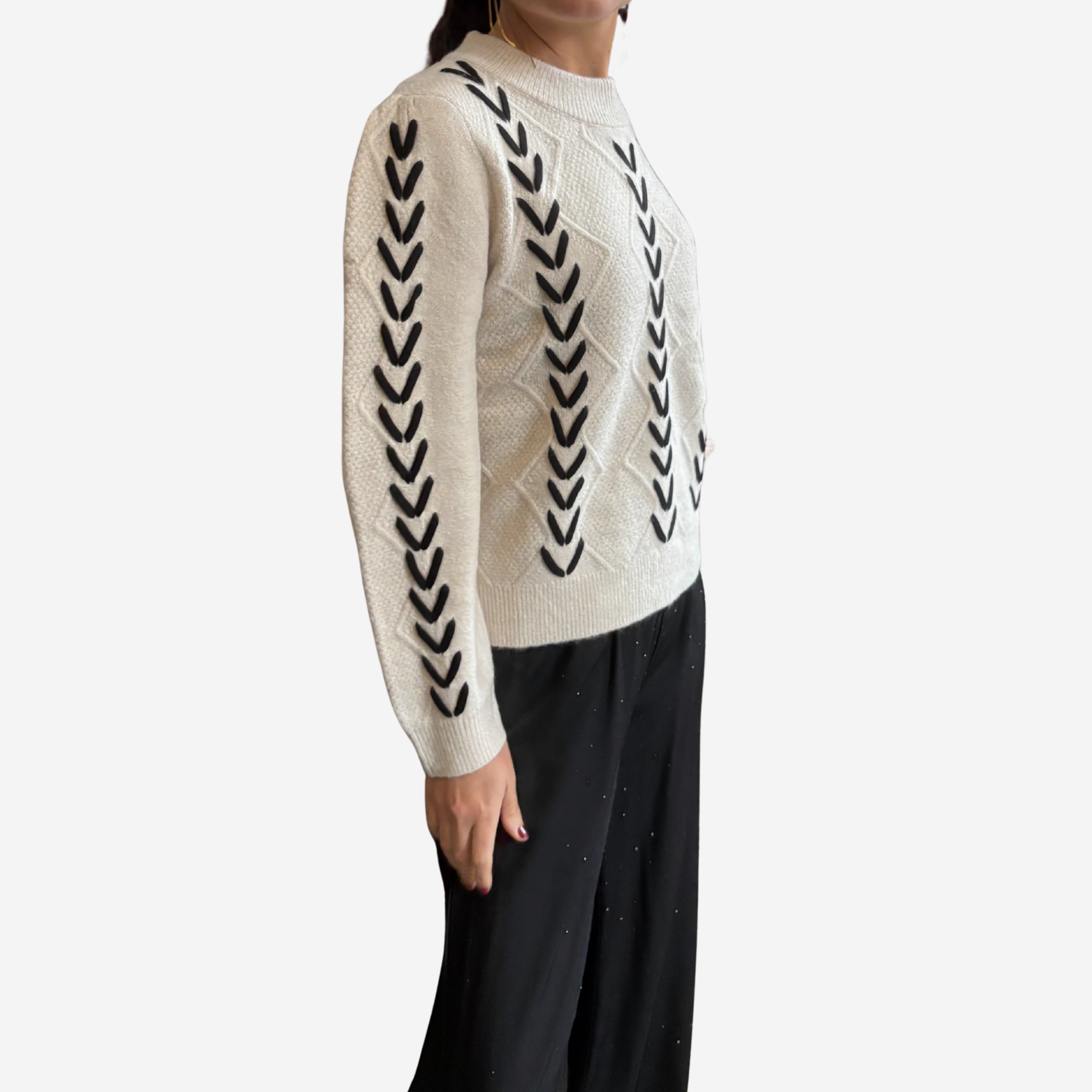 Jersey de color crudo con manga farol y detalles estilo cordón en color negro.