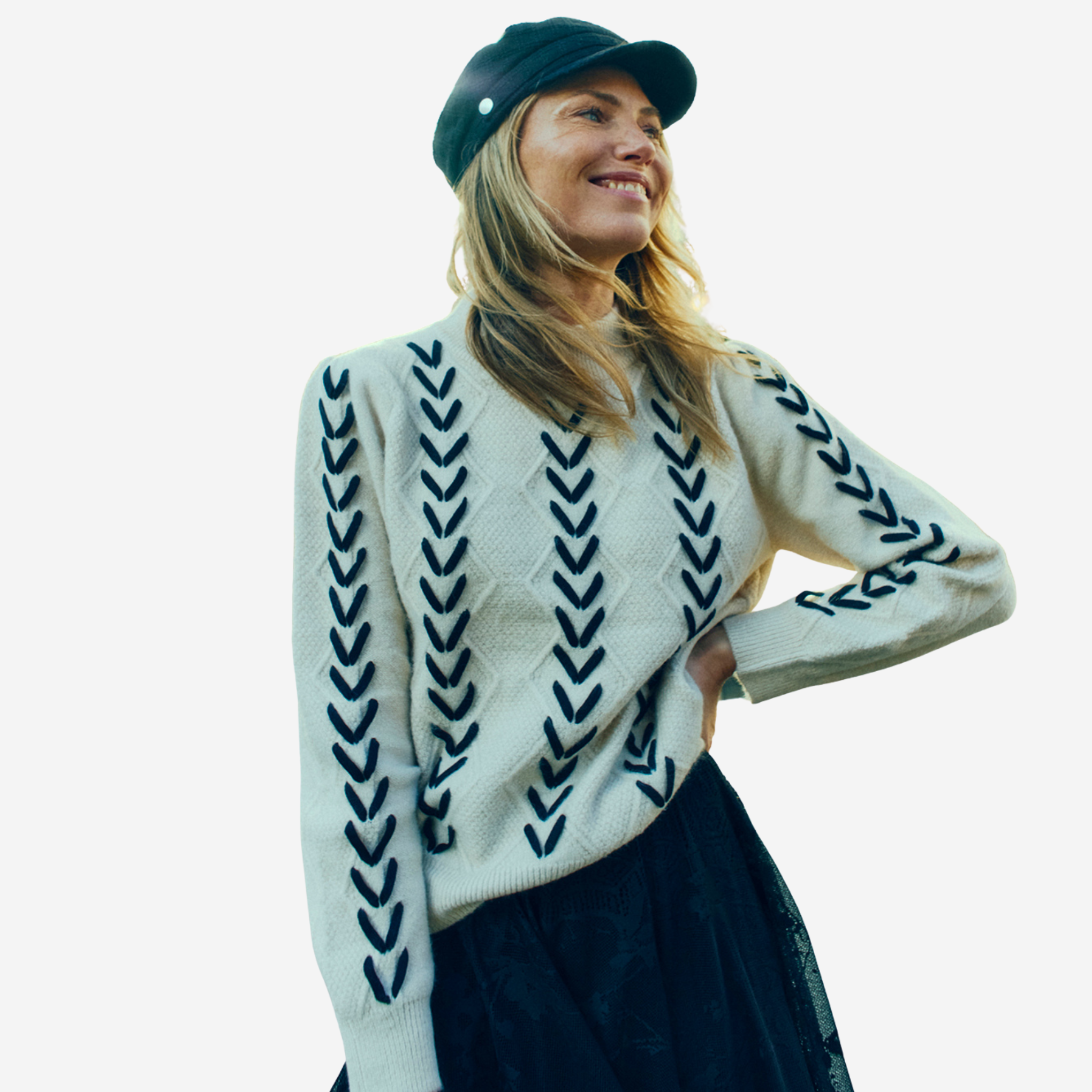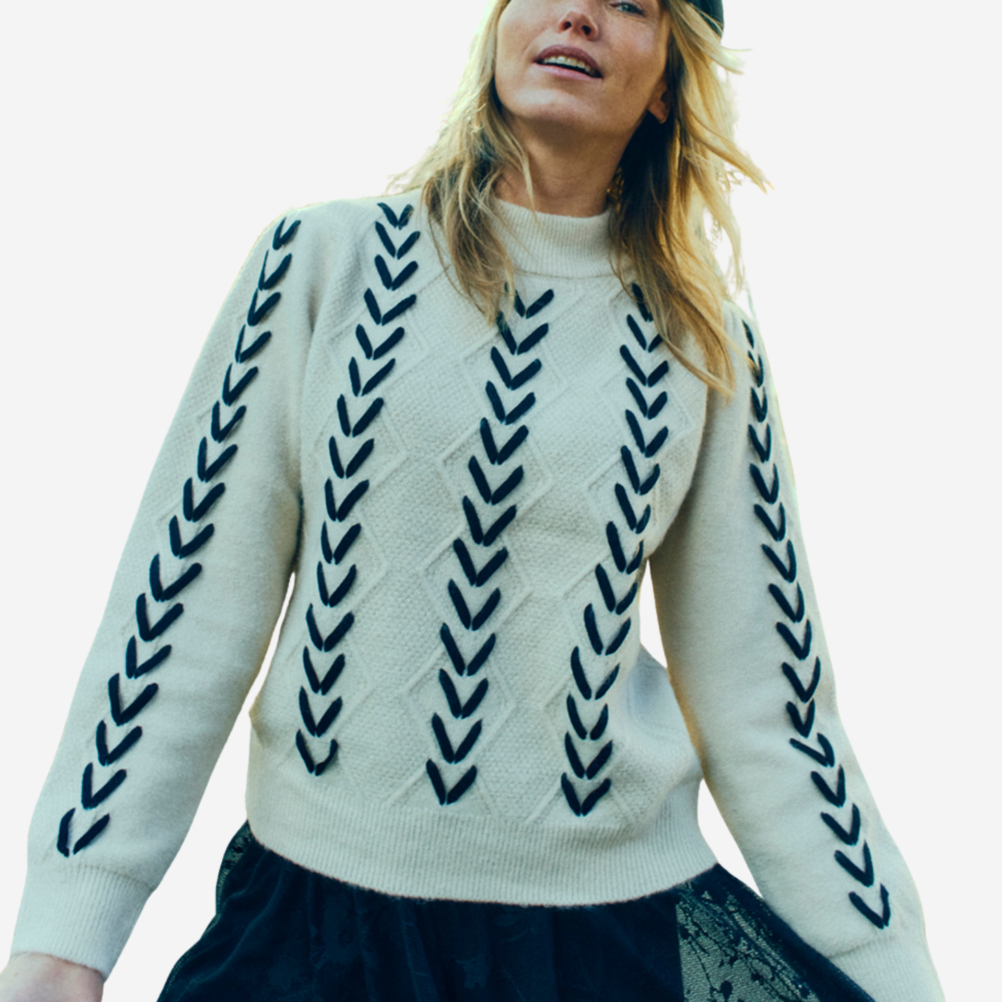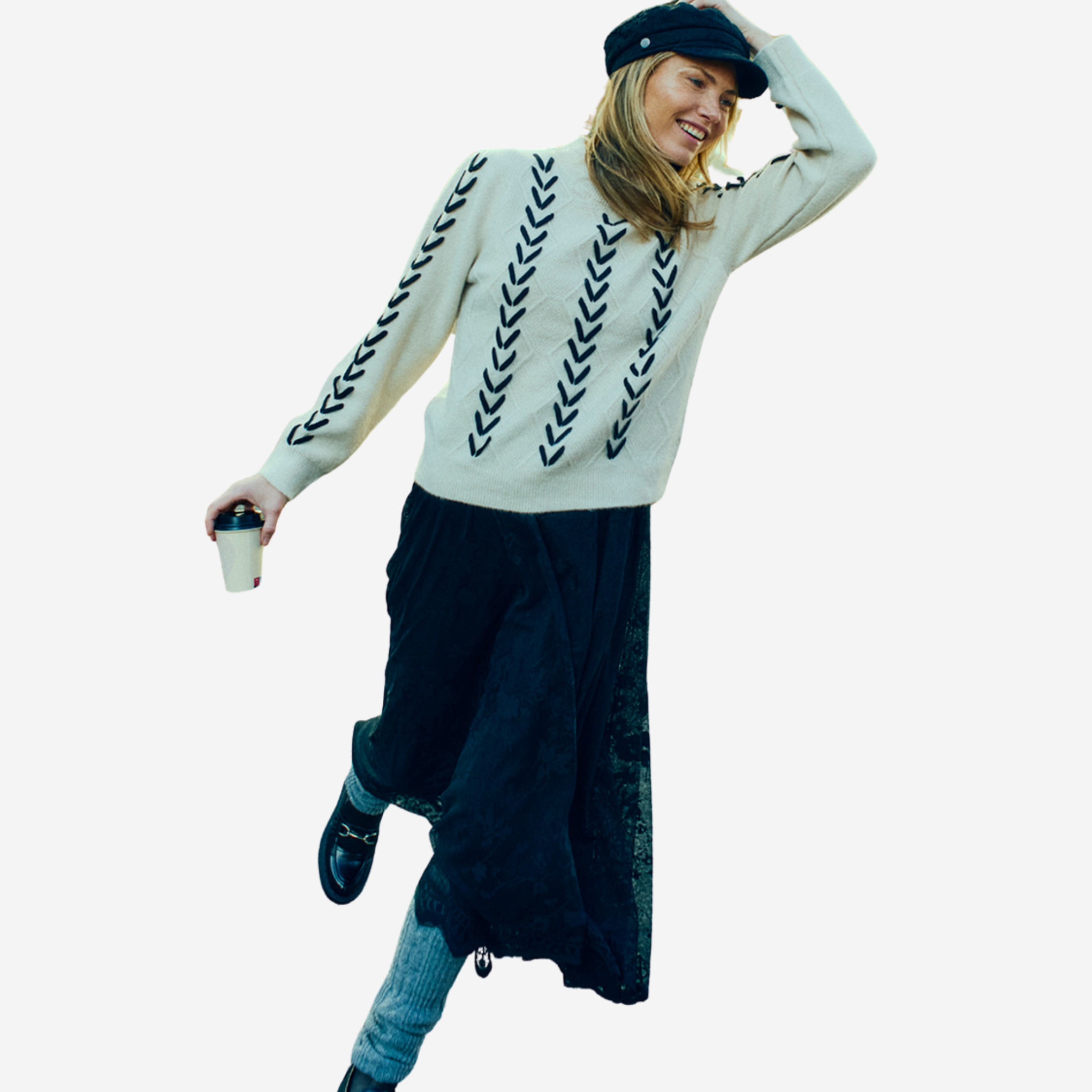 Jersey de color crudo con manga farol y detalles estilo cordón en color negro.