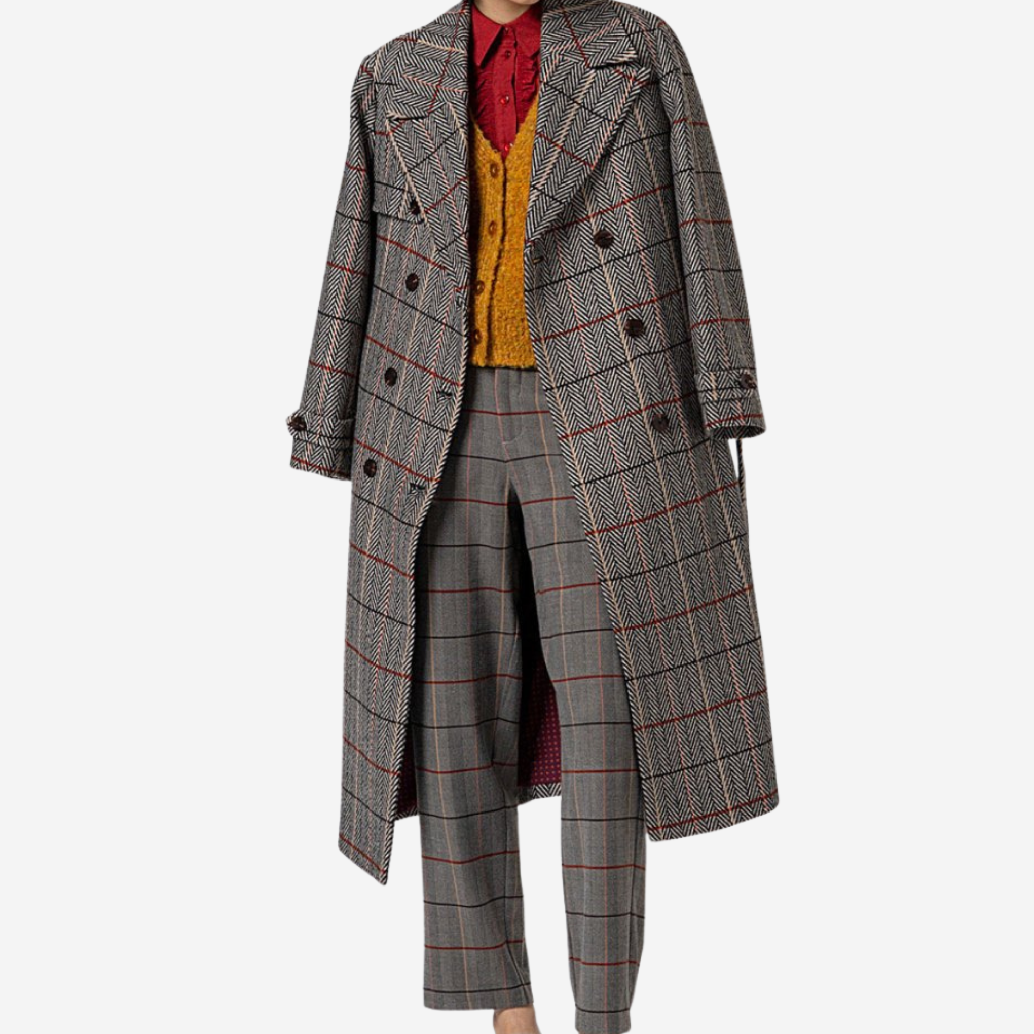 Pantalón de cuadros con bolsillos laterales. Cierre con cremallera y botón.