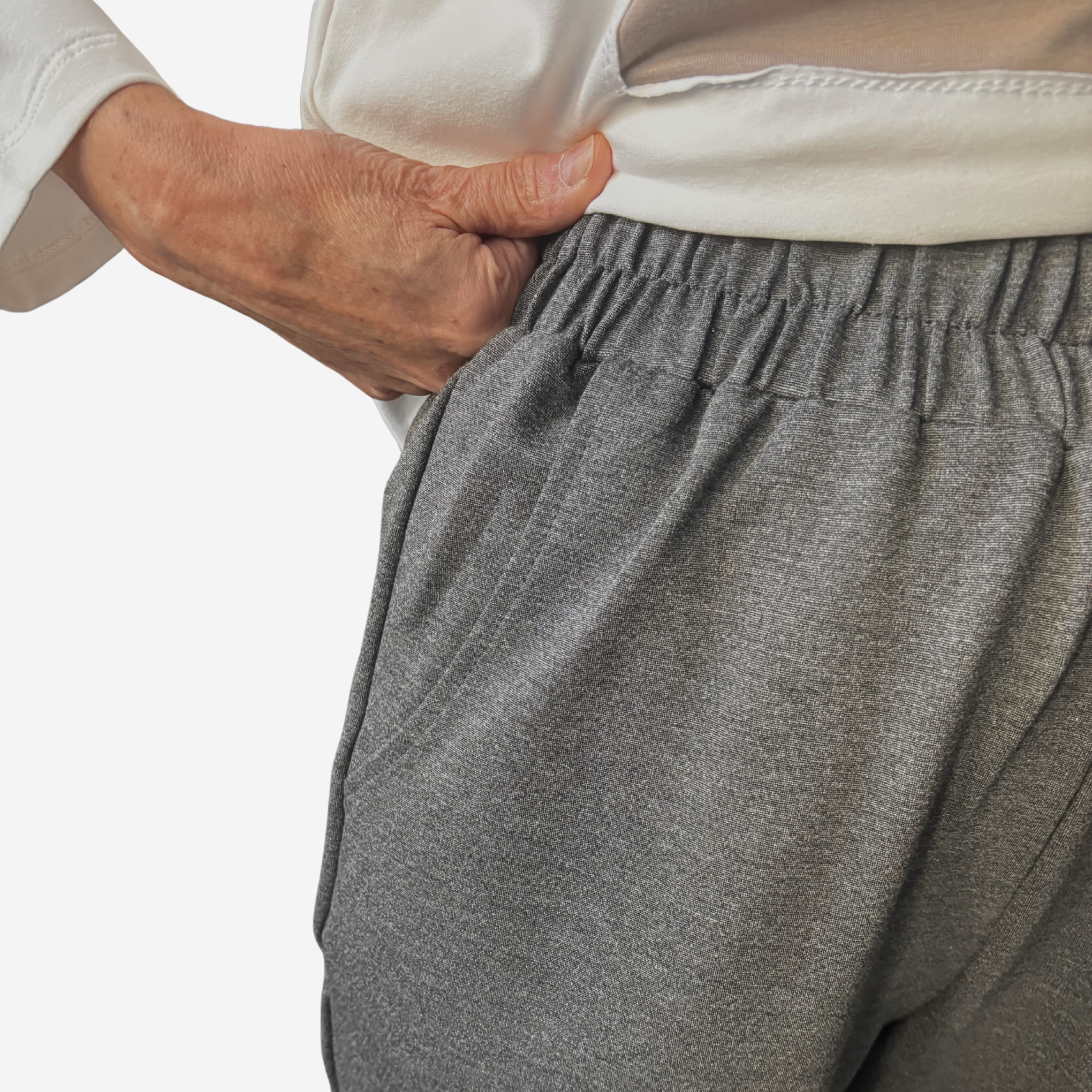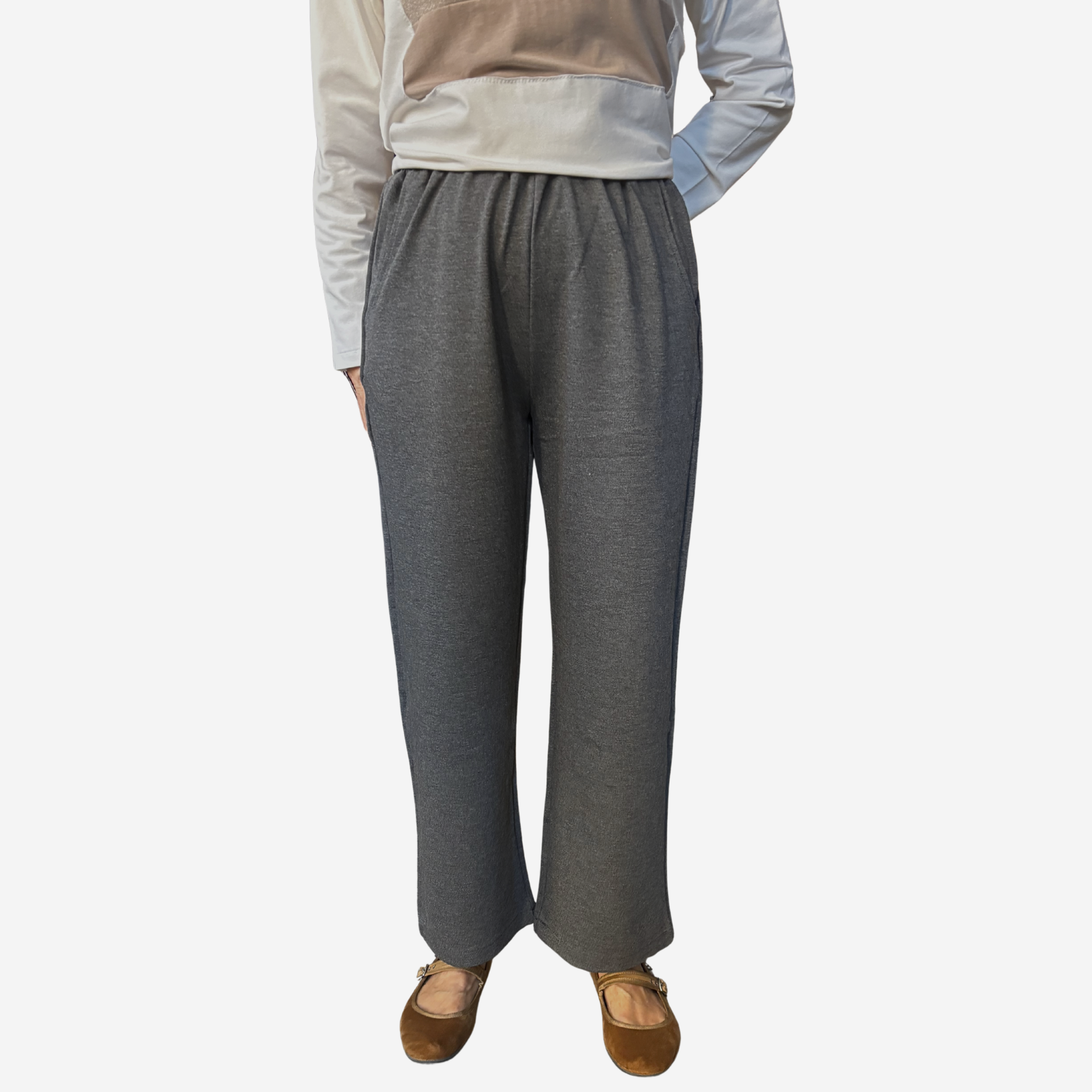 Pantalón recto de color gris con goma en toda la cintura. ¡Comodísimos! Tiene bolsillos laterales. Hecho en España,