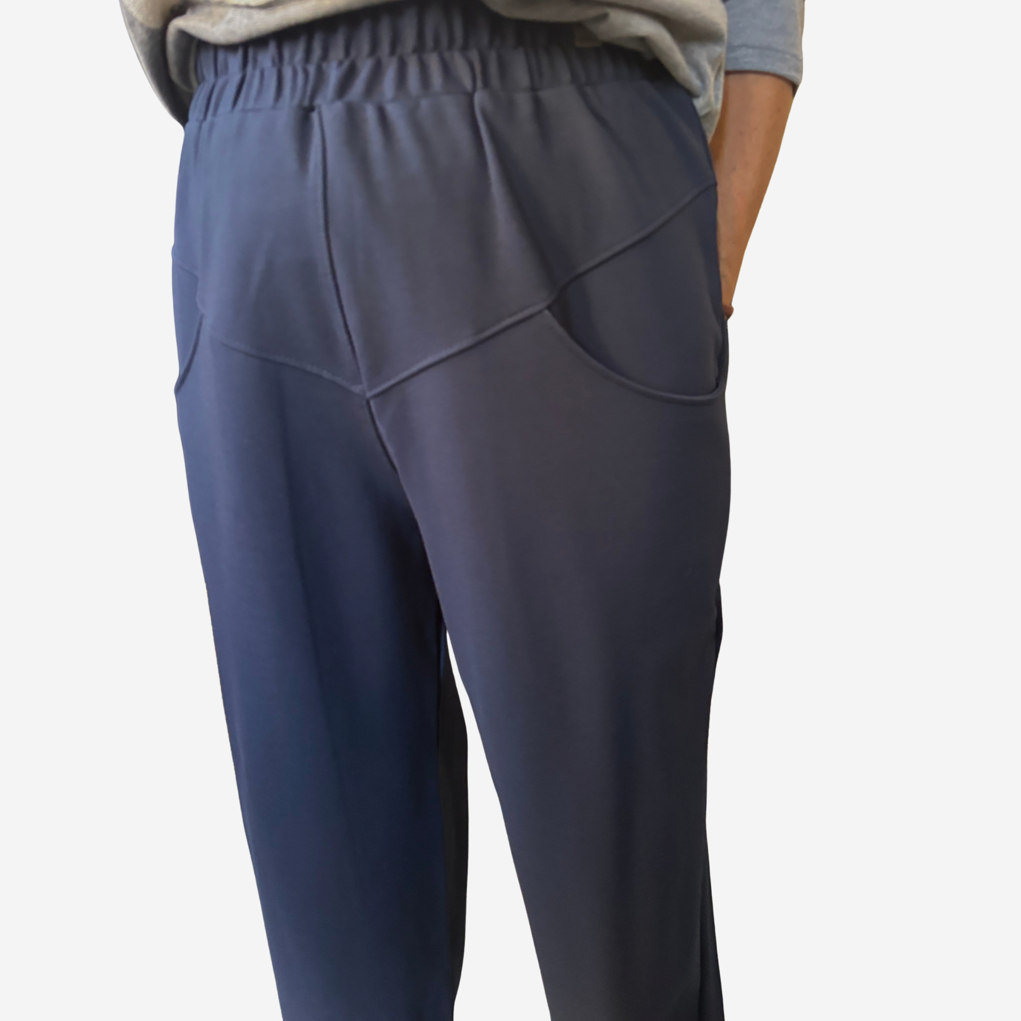Pantalón recto de color azul marino con goma en toda la cintura. ¡Comodísimos! Tiene bolsillos delanteros que no marcan y un bolsillo trasero.