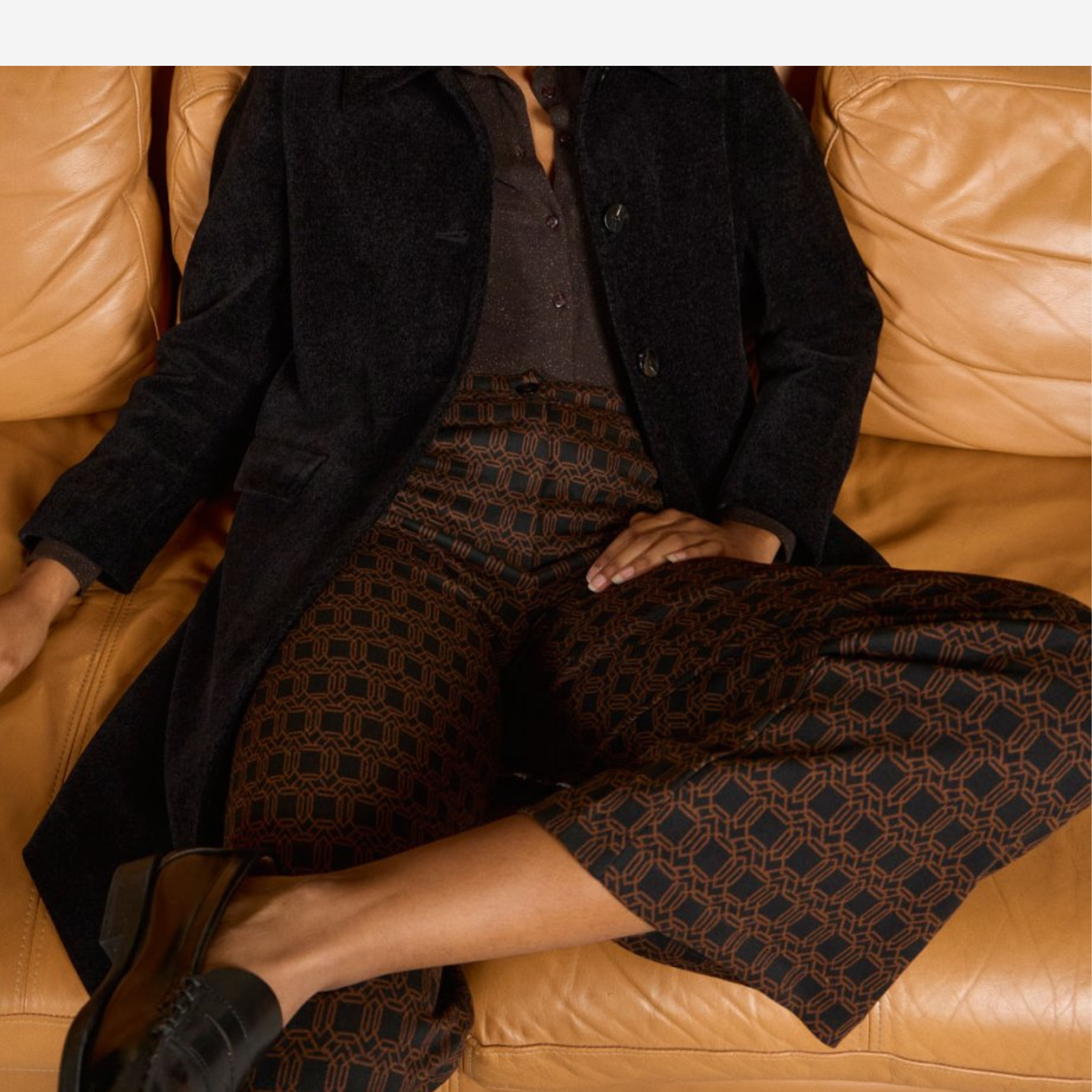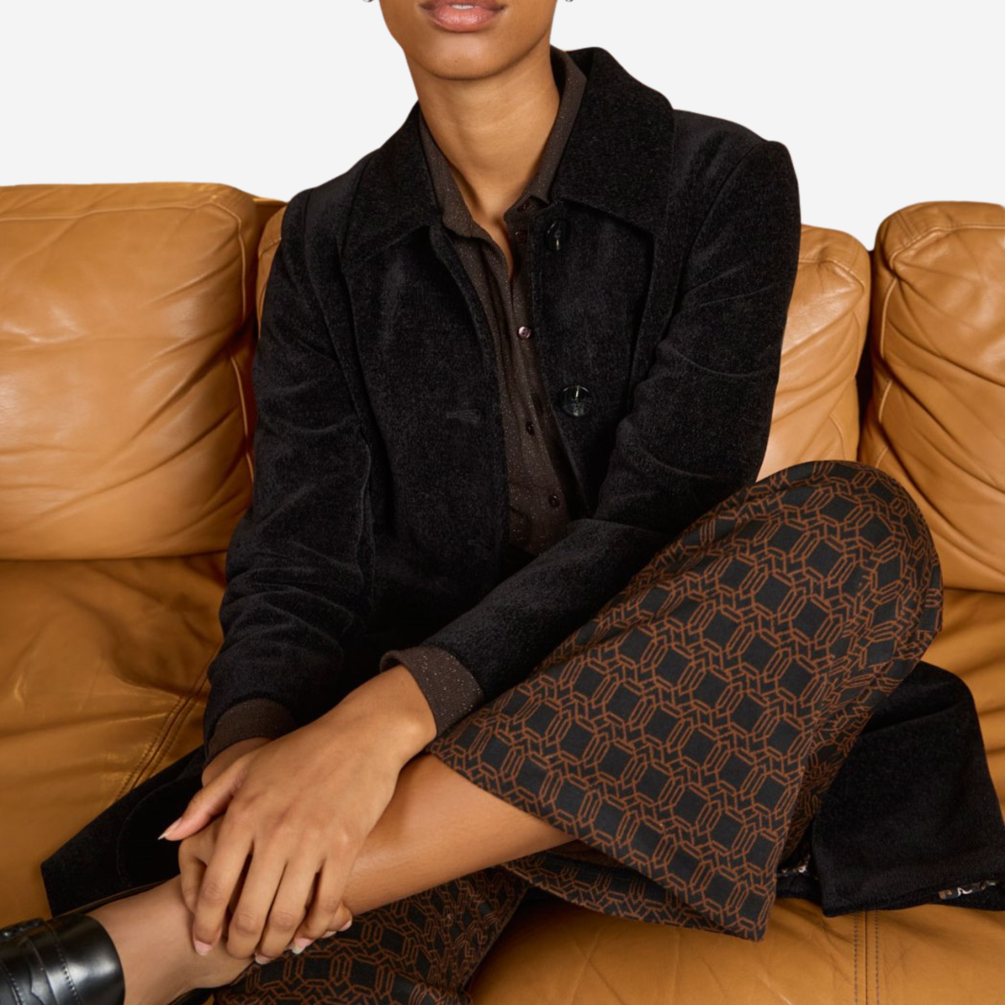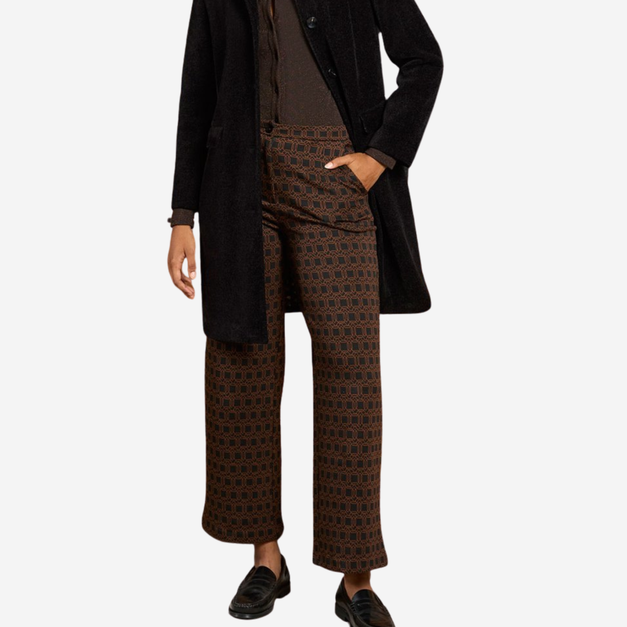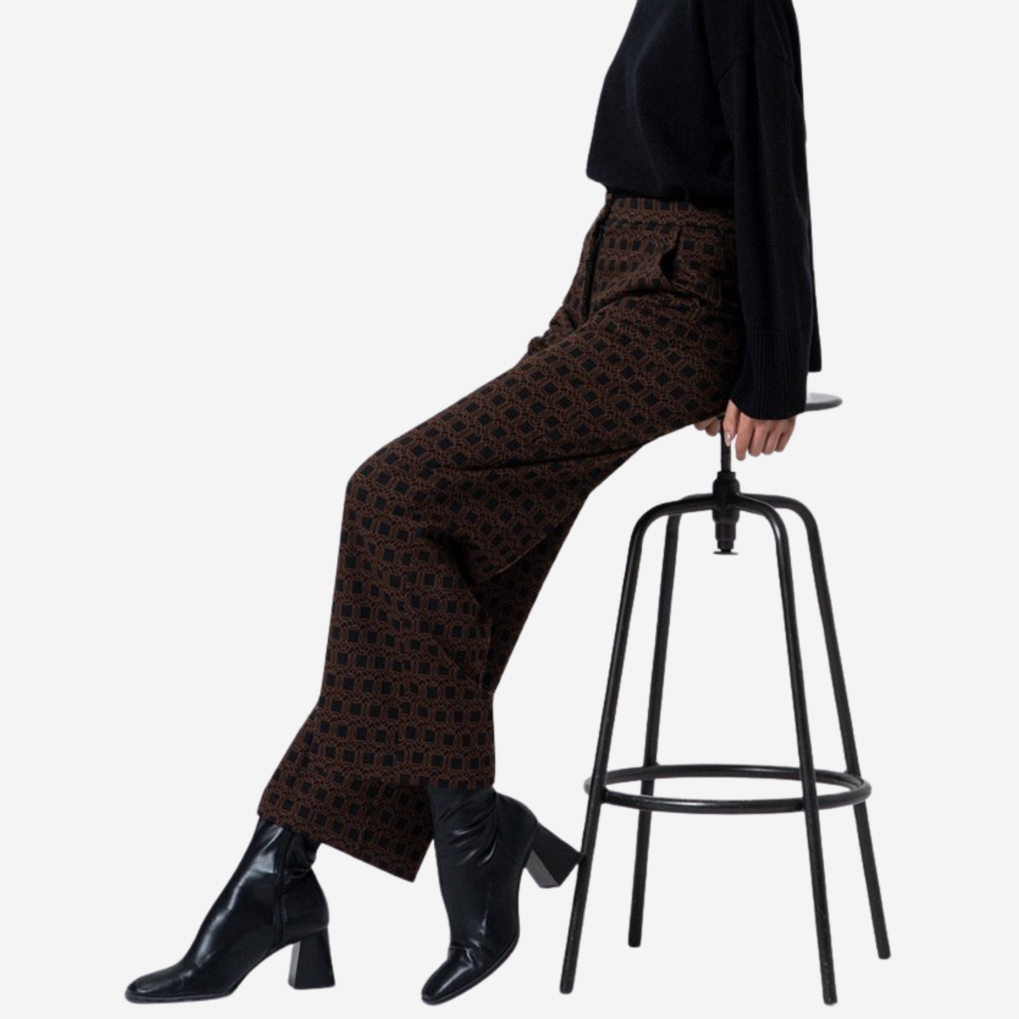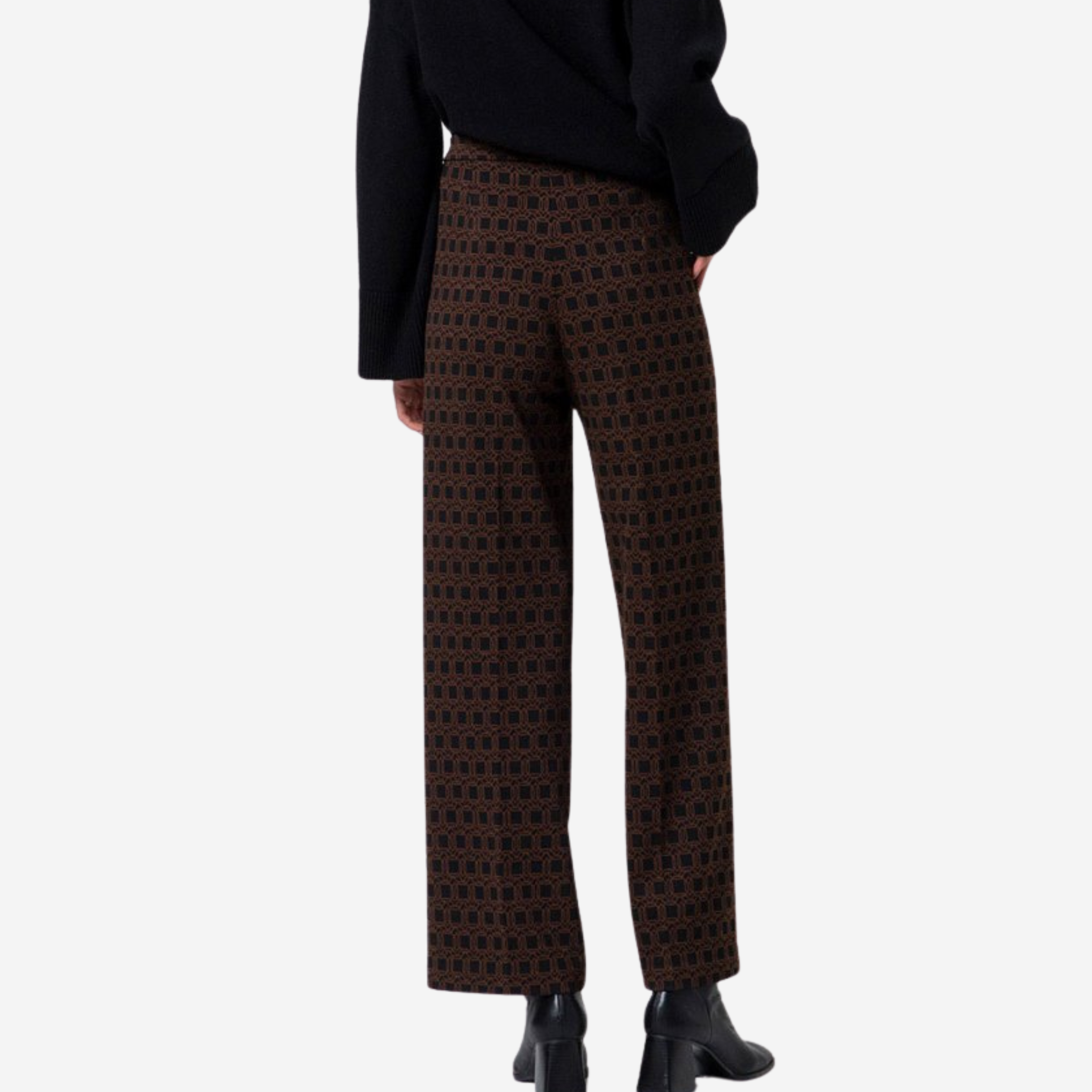 Pantalón de corte recto de color negro y marrón con cierre frontal de botón y cremallera ¡COMBINA CON LA CHAQUETA A JUEGO !